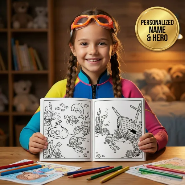 Photo to Personalized Kids Coloring Book – Deep Sea Explorer